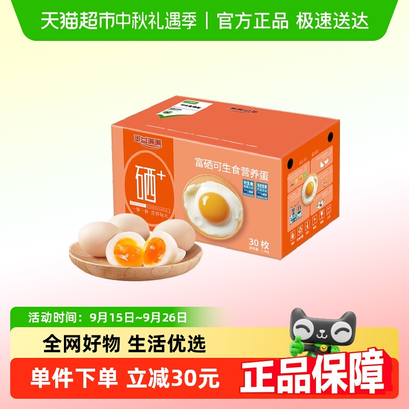 臻选可生食叶黄素鸡蛋50g*30枚新鲜无抗生素谷物喂养无蛋腥味
