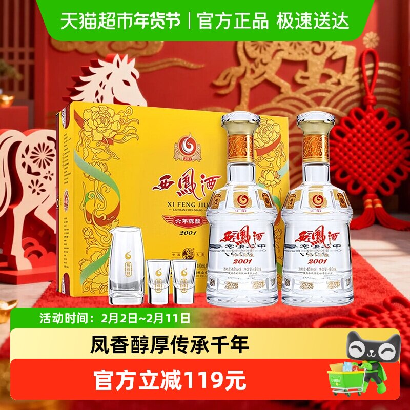 【下拉享优惠】西凤酒六年陈酿45度480ml*2瓶绵柔凤香型白酒礼盒