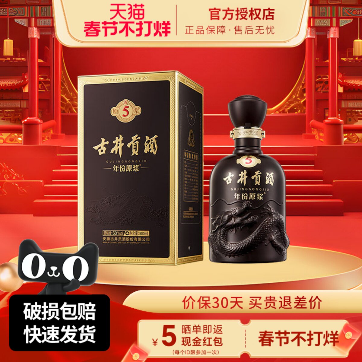 古井贡酒年份原浆古5 50度浓香型白酒 纯粮酒 宴请节日送礼酒水