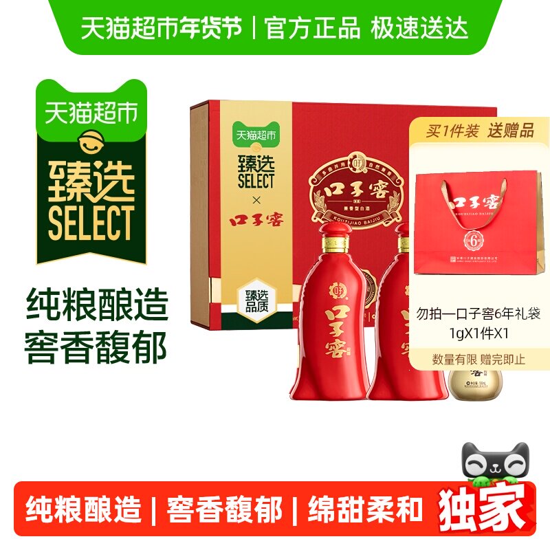 臻选 口子窖6年型礼盒50度550ml*2瓶白酒节日送礼聚会宴请