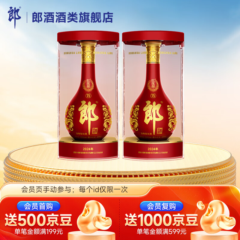 旗舰店郎酒红花郎十五(15)酱香型白酒 53度 500mL 2瓶