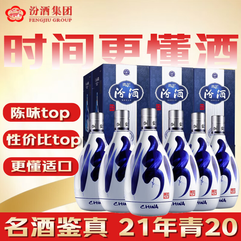 自营汾酒【金榜严选】青花20 2021年 清香型白酒 53度 500ml*6瓶 整箱装 陈年老酒 【名酒鉴真】