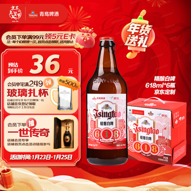自营青岛啤酒 德式小麦 精酿白啤 618ml*6瓶 京东定制 礼盒装 年货送礼