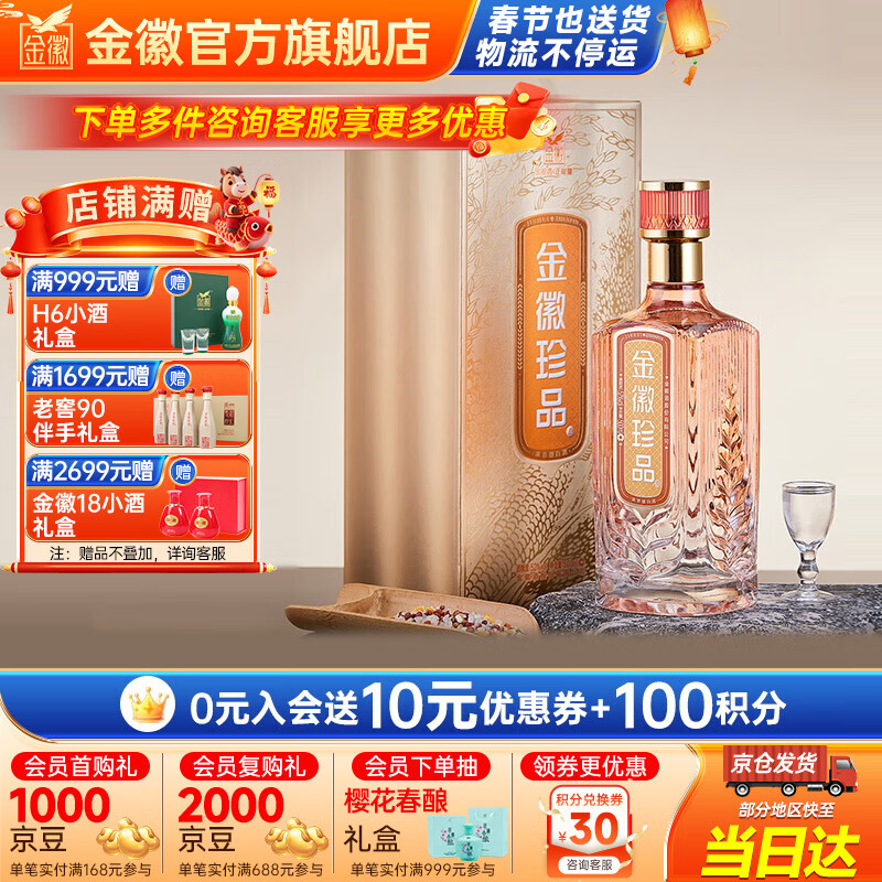 旗舰店金徽酒【春节礼品】金徽珍品浓香型白酒 52度 500mL 1瓶 单瓶装