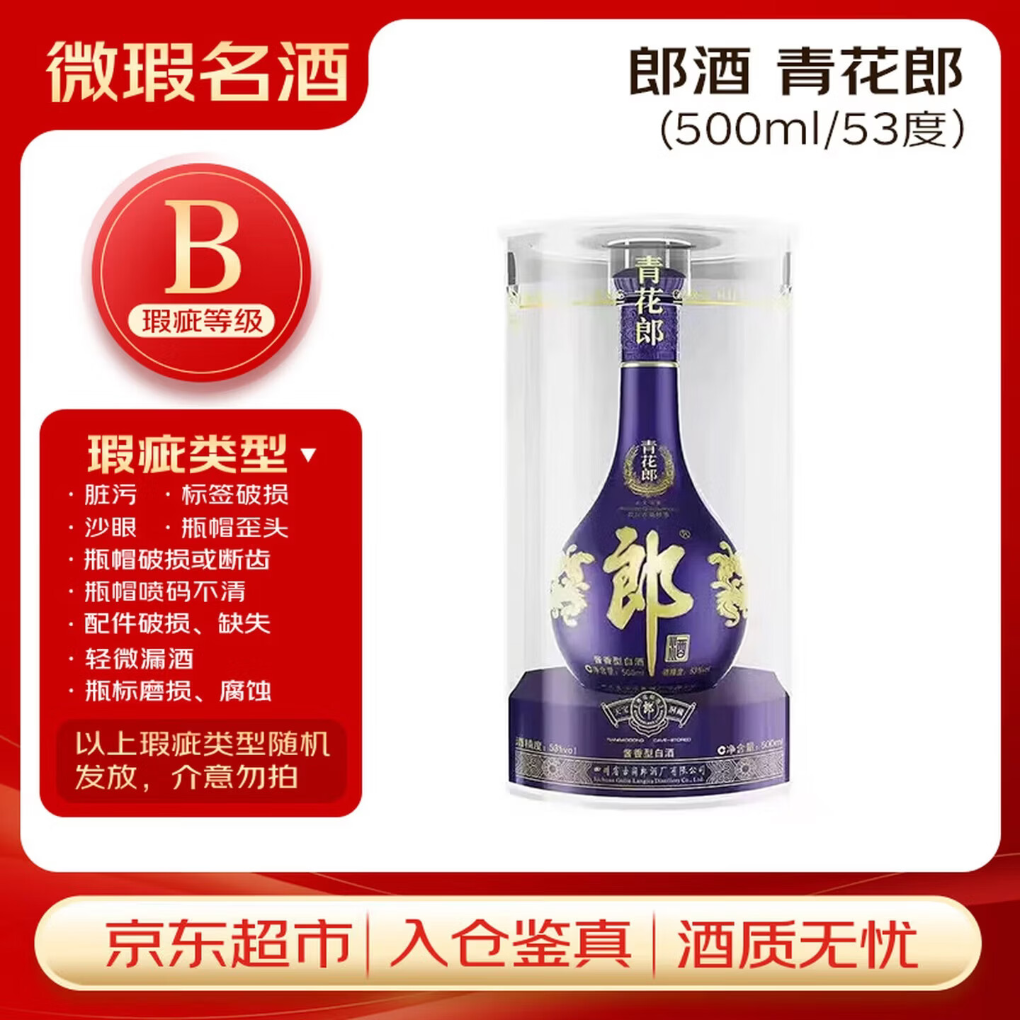 自营郎酒 青花郎 白酒 酱酒 53度 500ml*1 单瓶装【瑕疵喝品B级】
