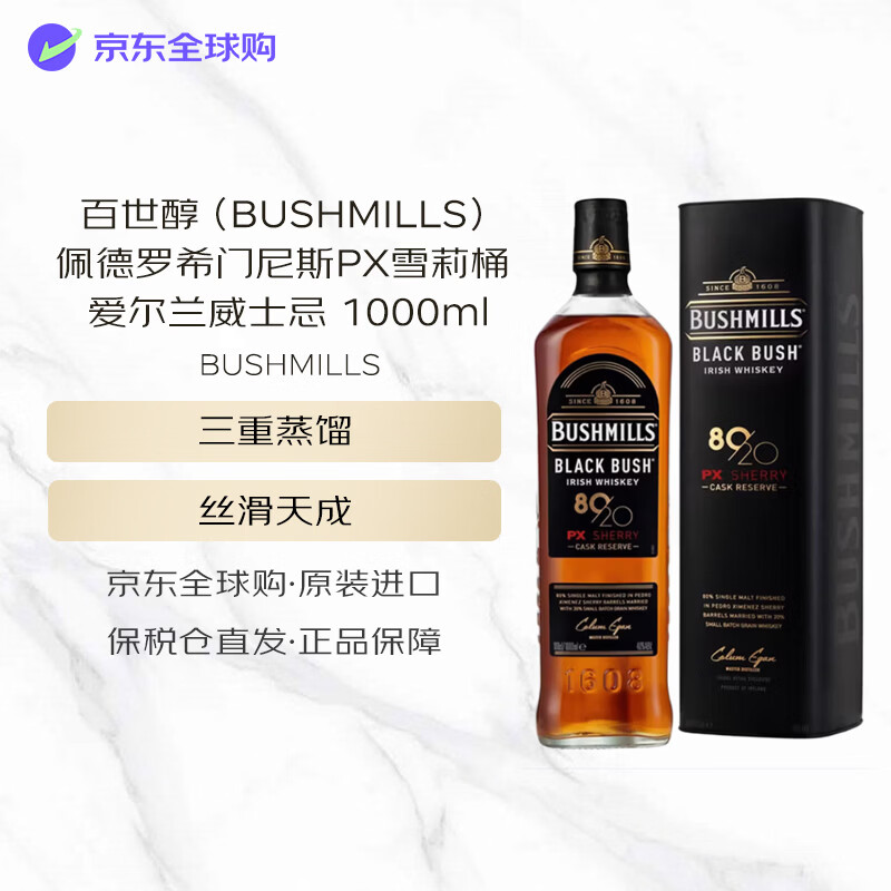 自营百世醇(BUSHMILLS)佩德罗希门尼斯PX雪莉桶 爱尔兰威士忌 1000ml 40度