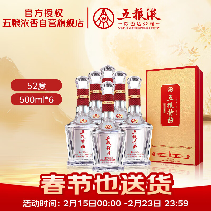 自营五粮液股份 五粮特曲 金彩版 浓香型白酒 52度 500ml*6瓶 原箱礼品