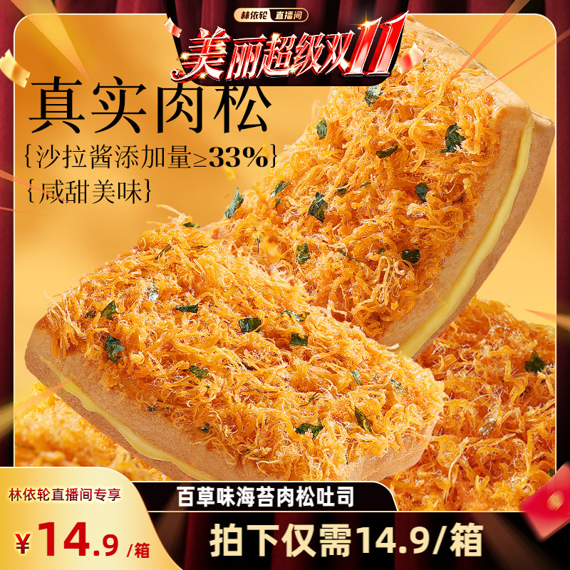 旗舰店港荣蒸面包整箱肉松味营养早餐食品办公室休闲零食手撕面包午后小吃 淡奶肉松味2箱共900g