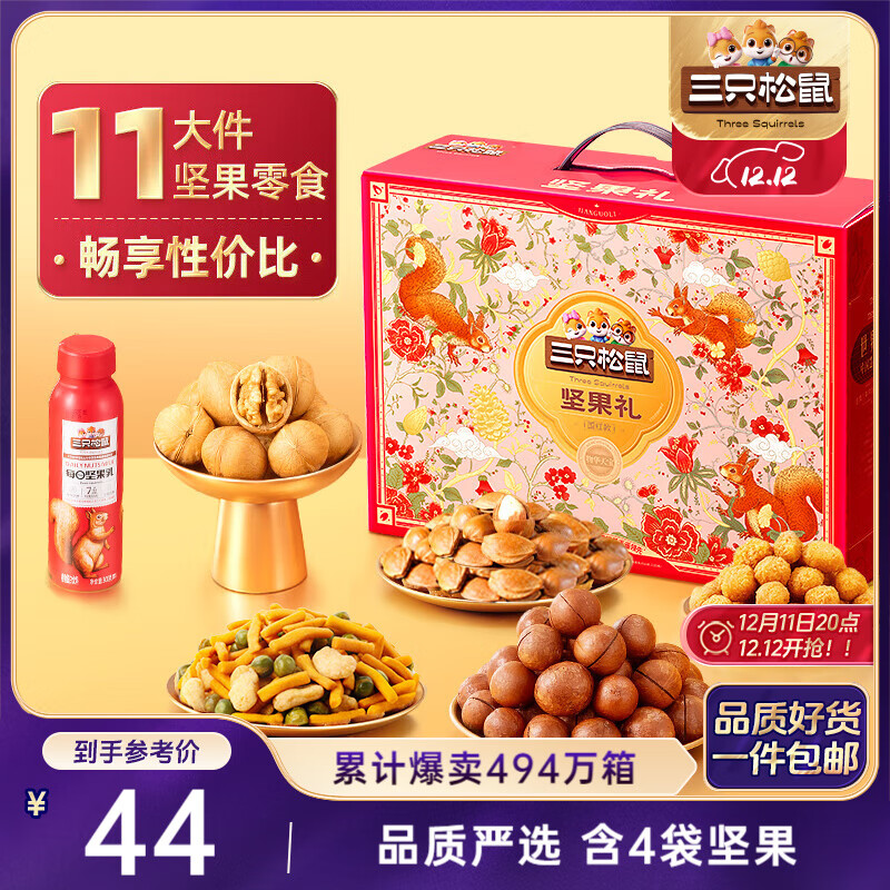自营三只松鼠坚果礼盒1385g/盒 混发零食礼包核桃夏威夷果坚果乳花生 团购送礼