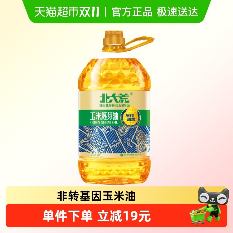 北大荒玉米胚芽油5L非转基因压榨食用油家用家庭桶装