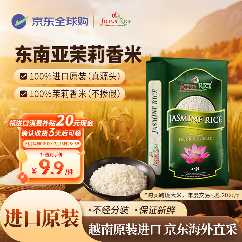 自营LOTUS RICE Flavour of Vietnam 东南亚进口茉莉香米4斤装 精选进口大米 莲花香米 长粒米