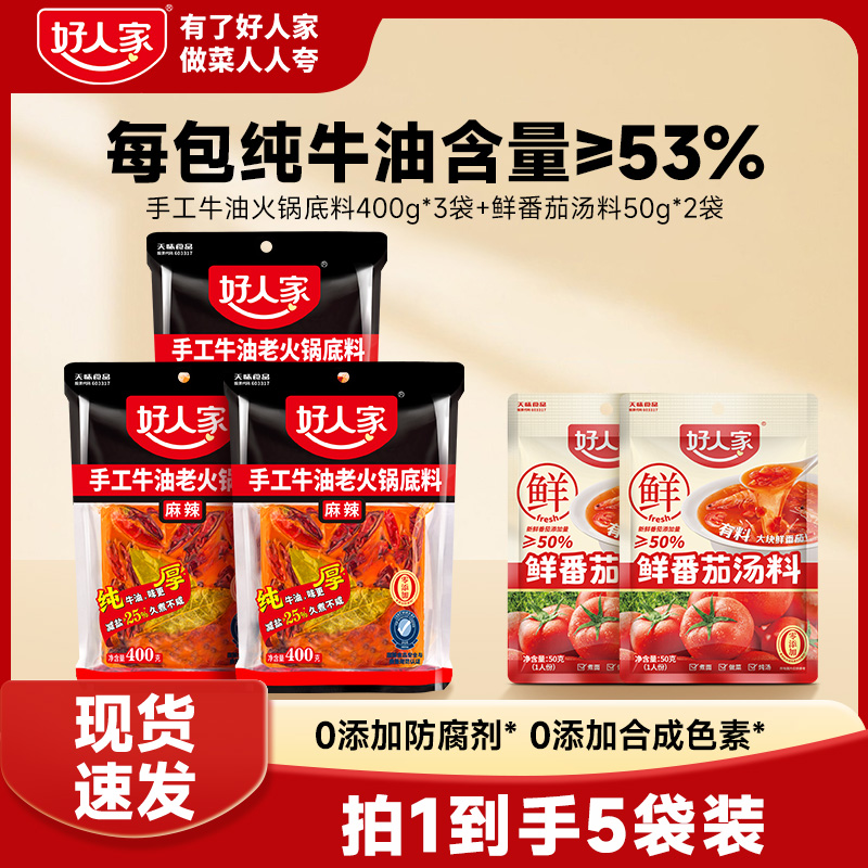 旗舰店【好人家】手工牛油麻辣火锅底料400g*3大块家庭聚会+鲜番茄组合FY