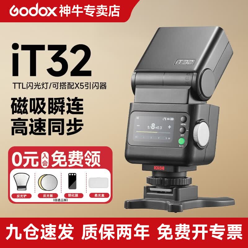 神牛【买一送三】iT32机顶闪光灯便携TTL热靴闪光灯适用佳能r50尼康索尼zv10富士x5徕卡q3 m11闪光灯 iT32标配(引闪底座另购)-入会有礼