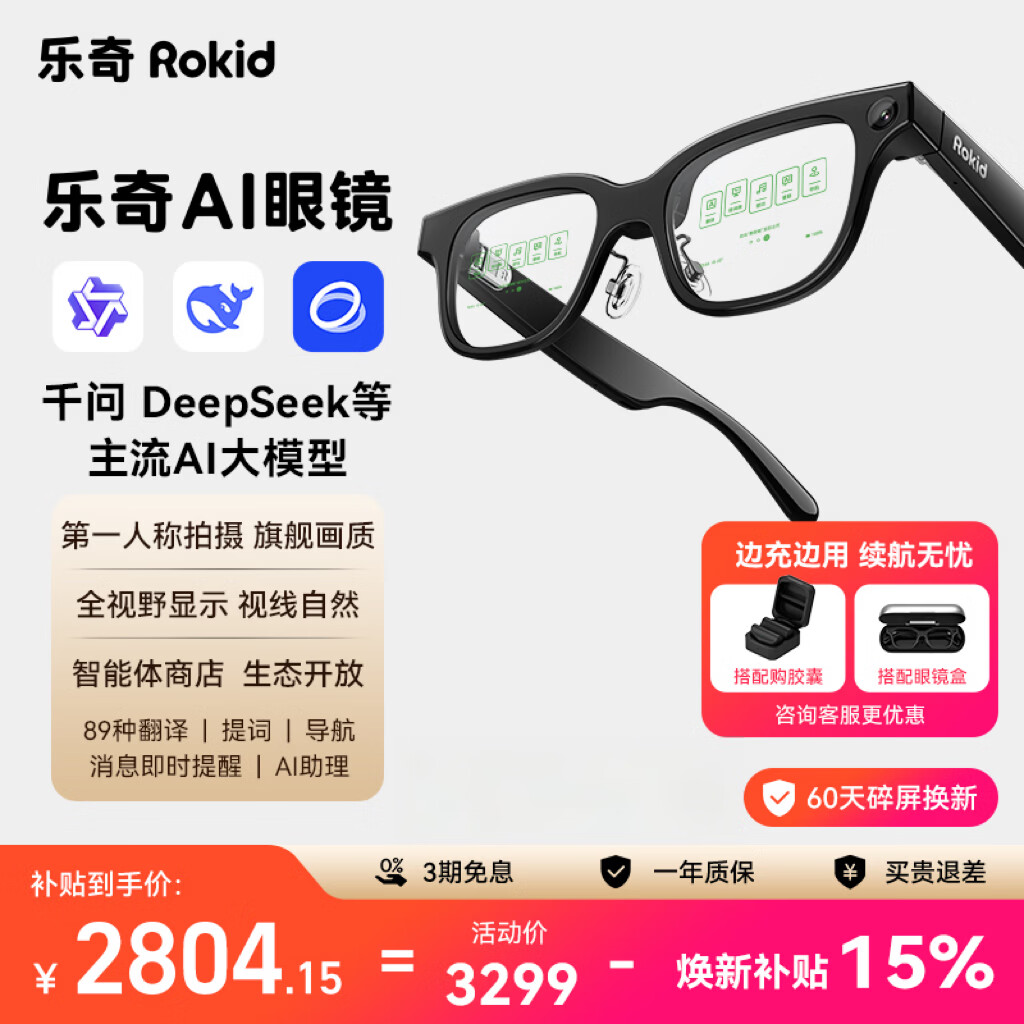 自营ROKIDGlasses乐奇AI眼镜 智能眼镜 千问等多种大模型【最快当日达】AR眼镜 拍摄导航翻译提词 灵伴科技