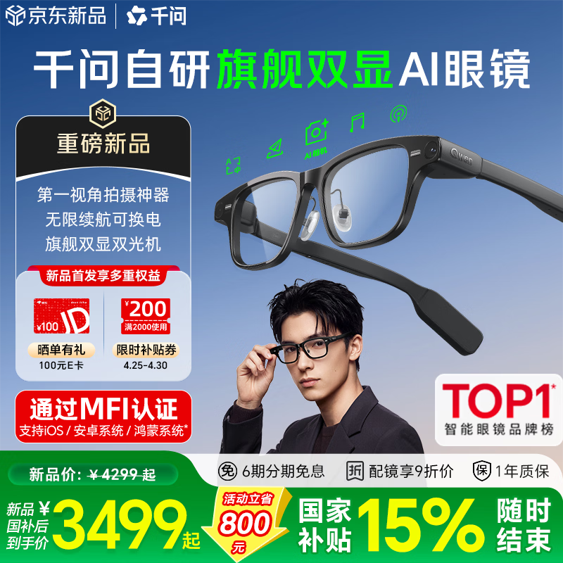 自营千问AI眼镜G1【最快当日达】官方AI助手 蔡司防蓝光平光镜 智能眼镜翻译拍照录像耳机 国家补贴15%夸克