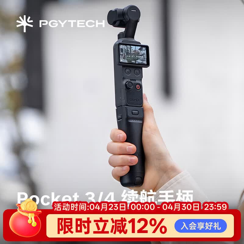 旗舰店PGYTECH适用于DJI大疆Pocket4续航手柄二合一充电宝OsmoPocket3/4相机拓展配件4900mAh大容量移动电源 续航手柄