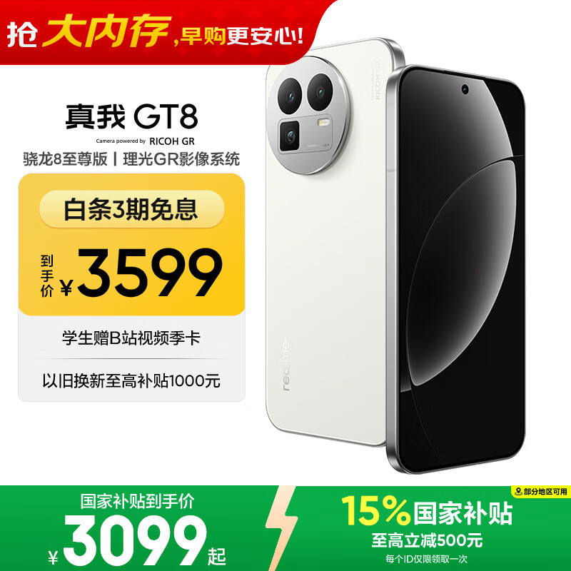 自营真我GT8 OPPO 骁龙8至尊版 大内存性价比 电竞独显芯片 2K 144Hz高刷直屏 学生手机16+512白