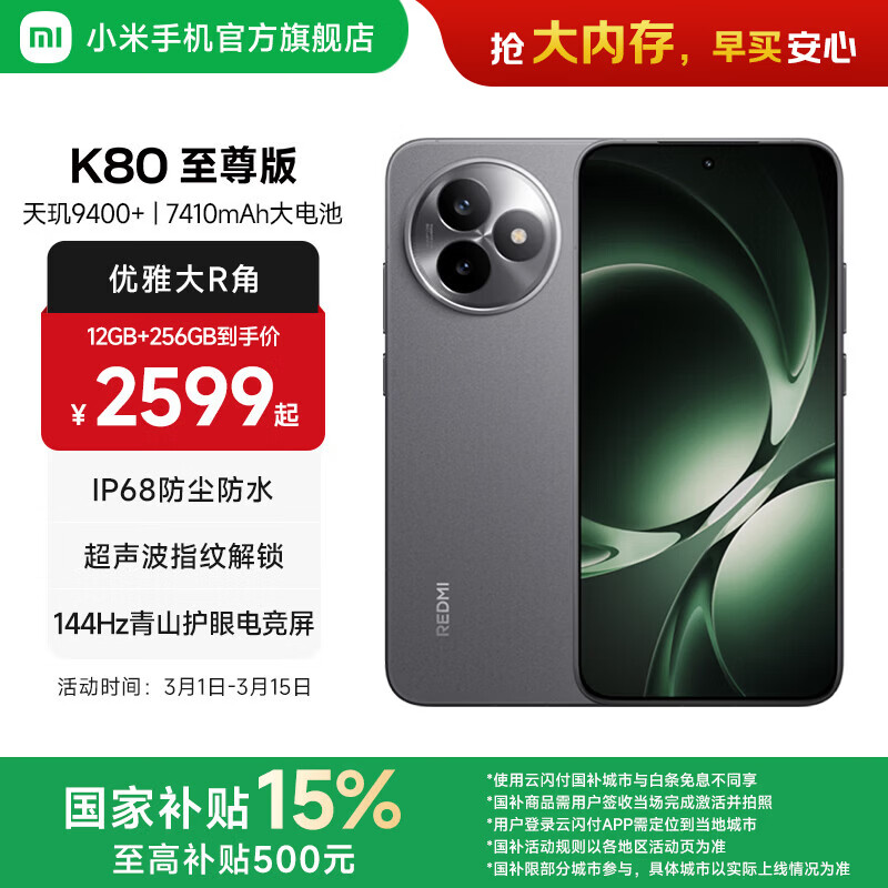 百亿补贴【政府补贴】REDMI K80至尊版红米手机小米手机新品红米k80至尊学生游戏电竞旗舰手机百亿补贴官方正品