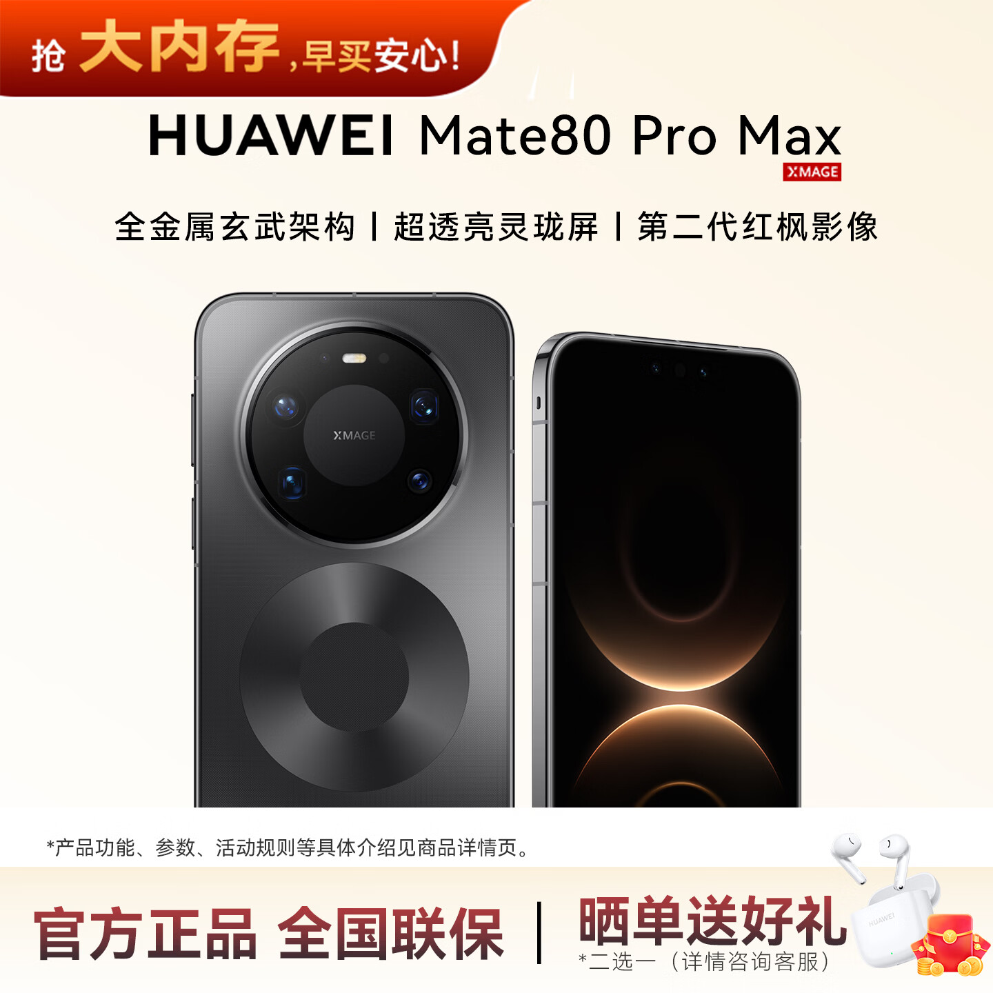 旗舰店华为(HUAWEI)Mate 80 Pro Max 麒麟9030 Pro 全金属玄武架构超透亮灵珑屏鸿蒙系统华为手机 PT63 极夜黑 16GB+512GB