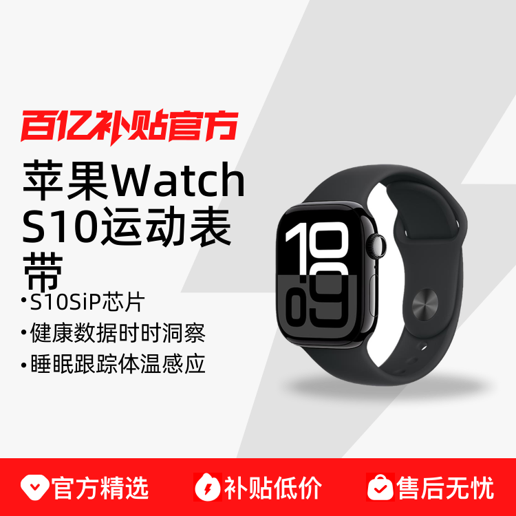 百亿补贴Apple/苹果 Watch Series 10 智能手表运动型表带S10 SiP 芯片百亿补贴正品