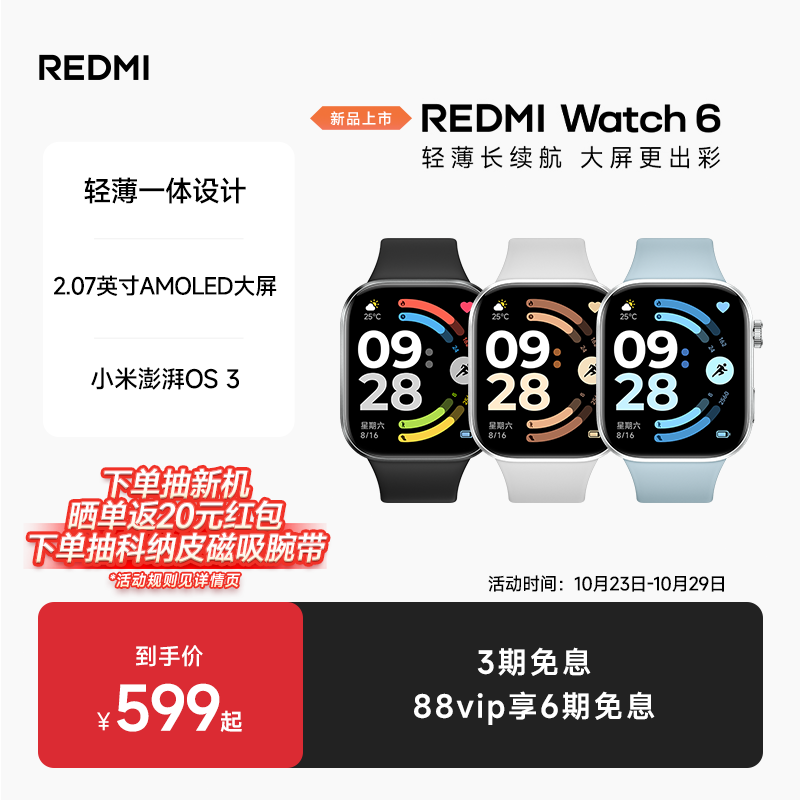 旗舰店【新品上市】红米手表6 REDMI Watch6 小米智能手表运动跑步长续航蓝牙通话血氧心率高清大屏红米手表5升级款