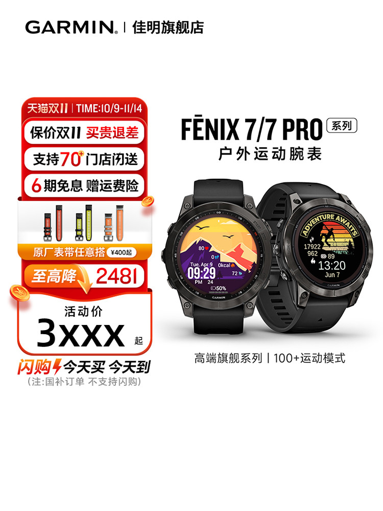 旗舰店【补贴15%】Garmin佳明Fenix7 Pro智能腕表心率血氧睡眠监测太阳能充电双频GPS定位LED手电筒运动手表