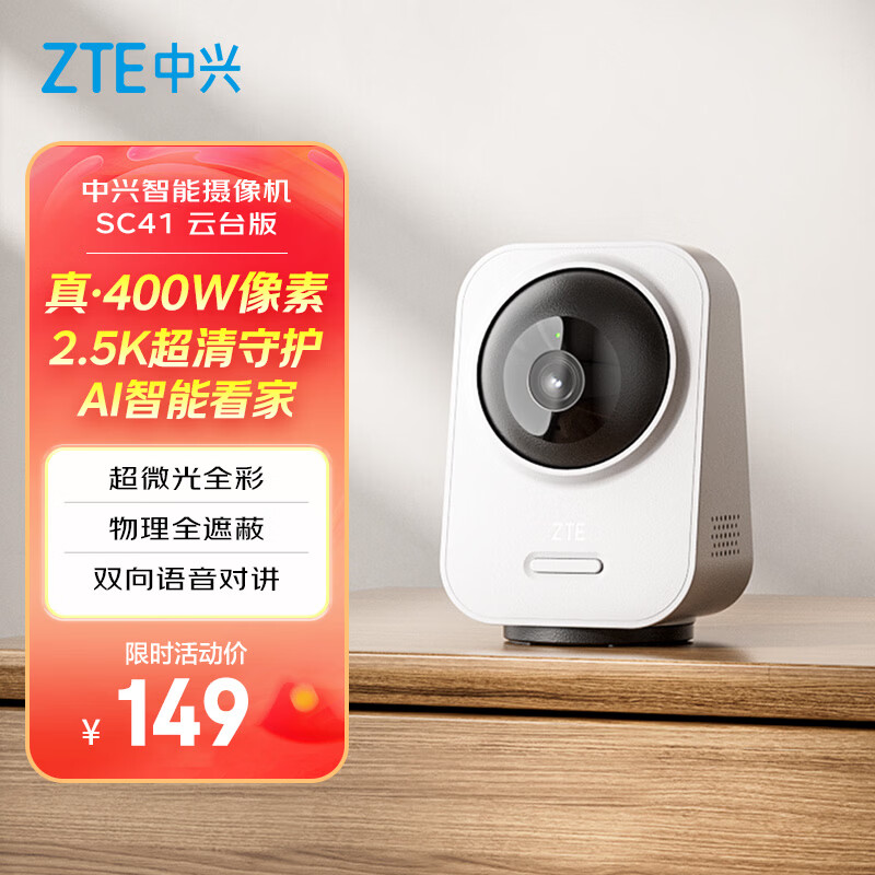 自营中兴(ZTE)小兴看看SC41云台版400万像素360度无死角超微光全彩 AI人形侦测手机查看双频家用摄像头监控