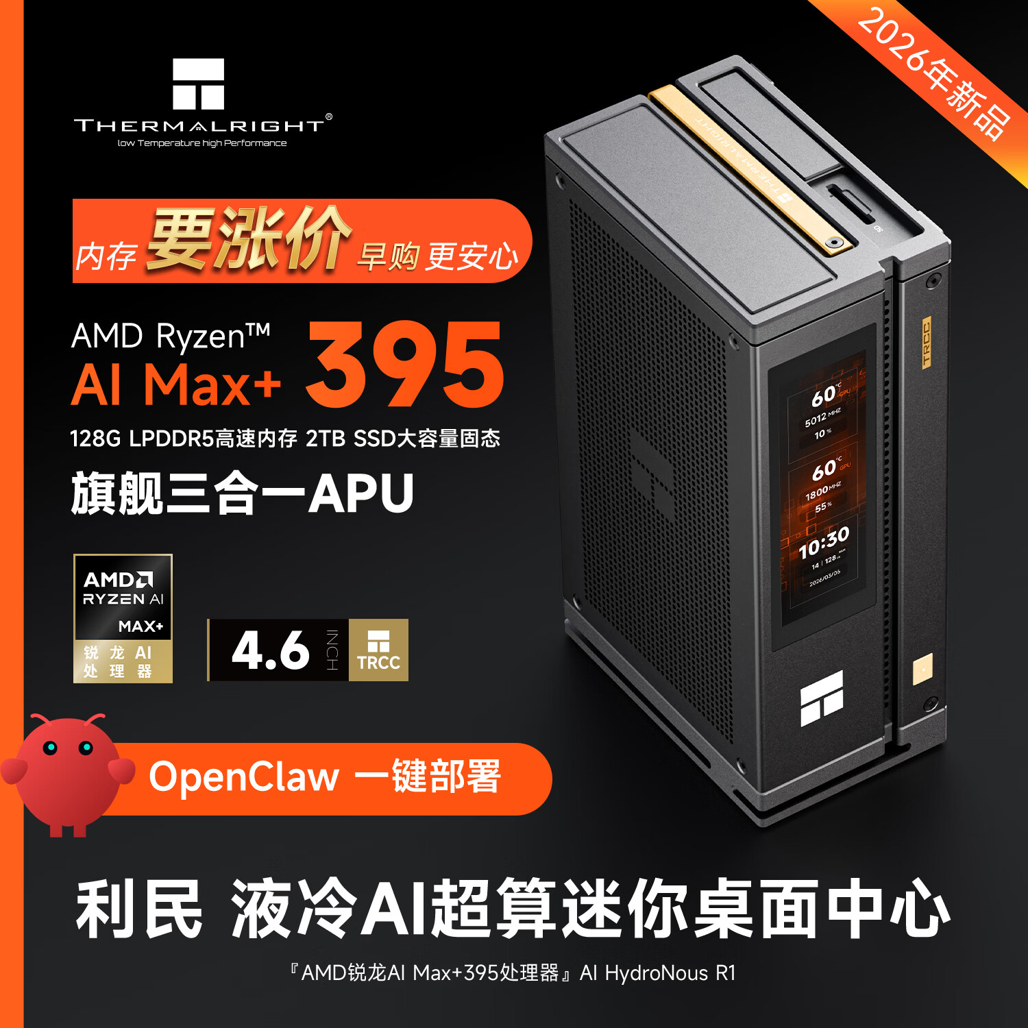 利民(thermalright)R1液冷AI迷你工作站台式电脑mini主机 OpenClaw本地部署养龙虾(AMD锐龙AI Max+395/128G/2T/8060S)