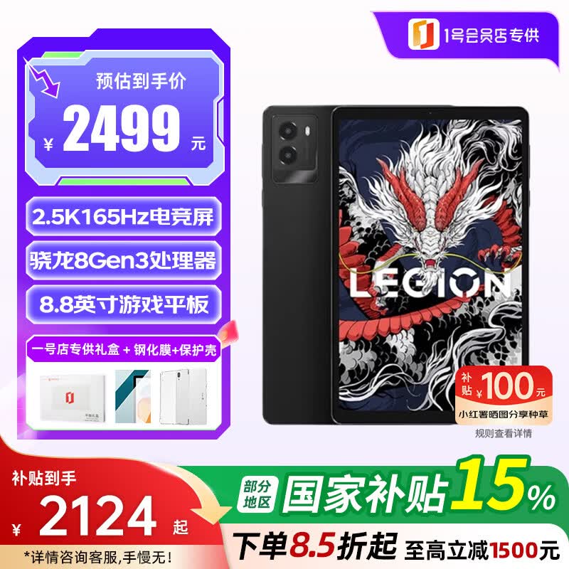 百亿补贴联想(Lenovo)拯救者Y700 8.8英寸平板电脑骁龙8Gen3 2.5K 165Hz16+512G冰魄白+钢化膜+保护壳1号店专供套装