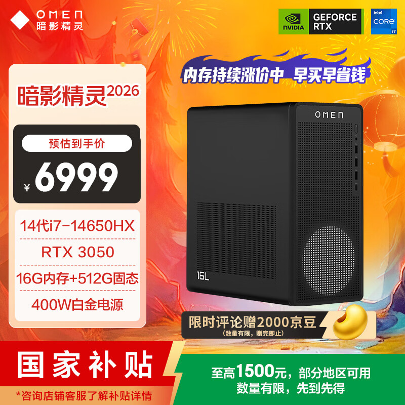 自营惠普(HP)暗影精灵26款高端游戏台式电脑主机AI设计图站(14代i7-14650HX RTX3050 16G DDR5 512GB) 国家补贴