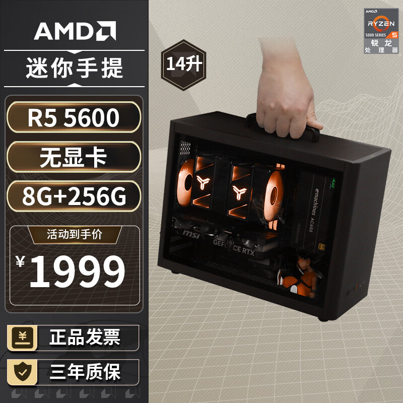 旗舰店AMD R5 5600/9600X/RX7650GRE/6500XT迷你主机ITX整机手提DIY电脑组装机台式mini办公台式机AI PC电脑 配置一丨R5 5600/无显卡