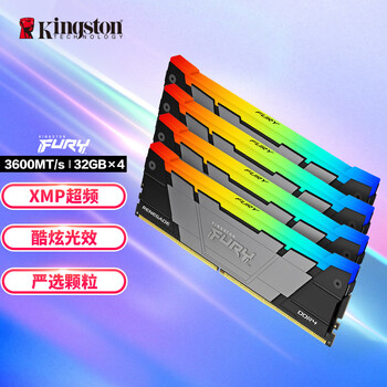 自营金士顿(Kingston)FURY 128GB(32G×4)套装 DDR4 3600 台式机内存条 Renegade叛逆者系列 RGB灯条 骇客神条