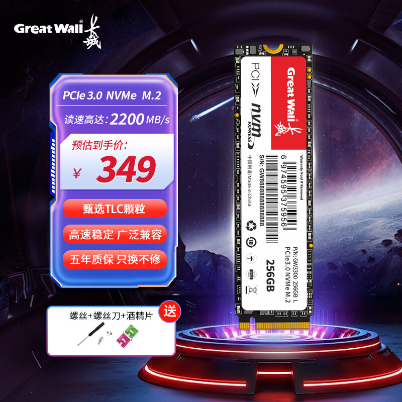 自营长城(Great Wall)256GB SSD固态硬盘 M.2接口(NVMe协议)PCIe 3.0 GW3300系列