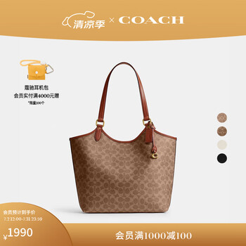 旗舰店蔻驰(COACH)经典标志DAY 托特包单肩包大容量复古斜挎包夏季女包 B4/棕黄色 焦糖色(新版)