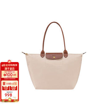 自营珑骧(longchamp)女士米色帆布金色五金按扣拉链开合大号托特包送女友L1899089P71