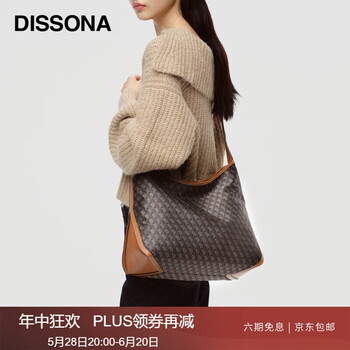 自营DISSONA迪桑娜女包hobo包老花包单肩手提包通勤包中性腋下包 棕色-大号