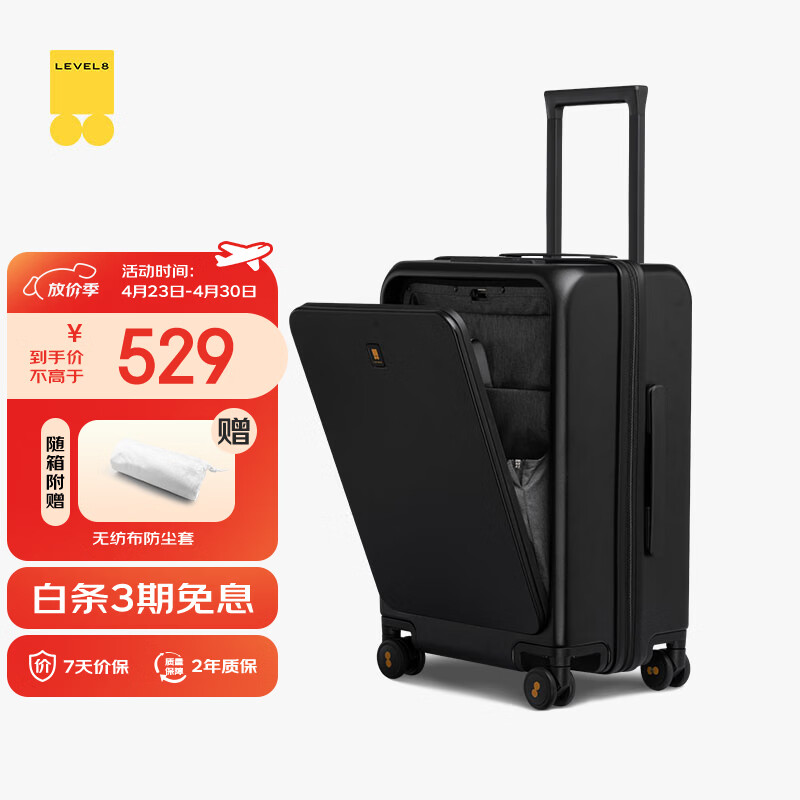 自营地平线8号(LEVEL8)行李箱旅行拉杆箱20英寸男女商务登机箱前开盖万向轮密码箱黑色