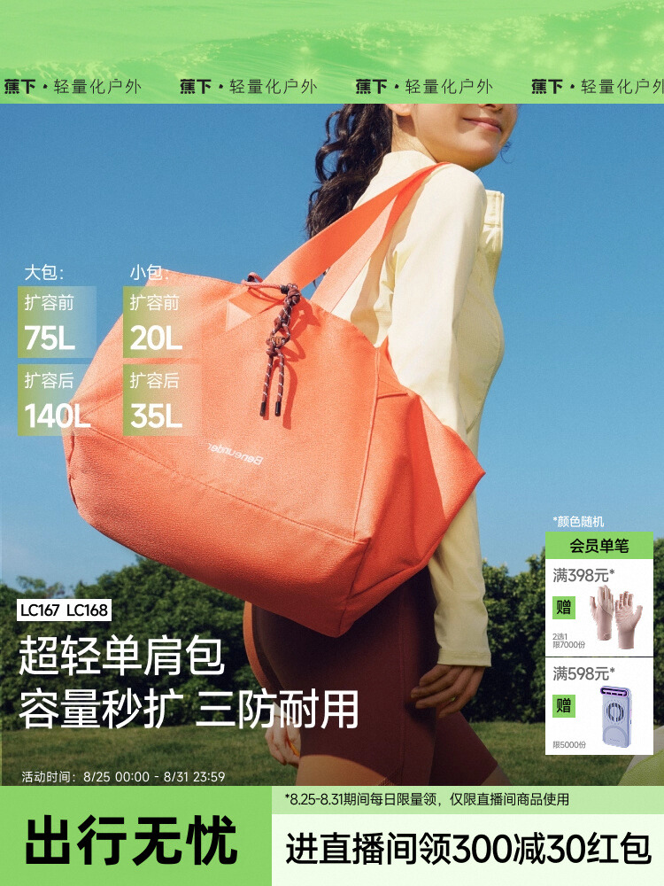 旗舰店蕉下短途旅行轻便包女大容量LC167手提包妈咪包运动健身单肩背包