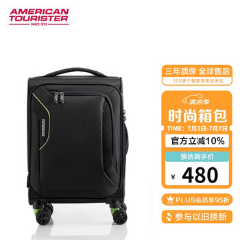 自营美旅箱包行李箱可上飞机20英寸可扩容拉杆箱旅行箱超轻软箱黑色DB7密码箱