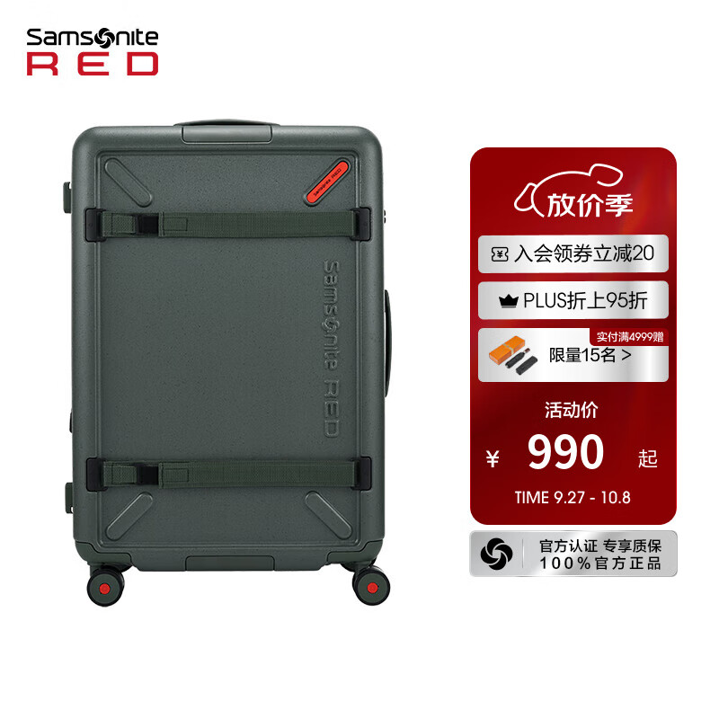 旗舰店新秀丽(Samsonite)行李箱女新款拉杆箱大容量结实户外露营旅行箱UB7 绿色 20英寸