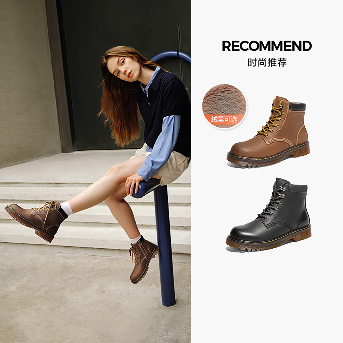 BELLE 百丽厚底英伦风马丁靴女靴子年冬季加绒工装短靴