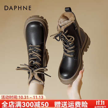 达芙妮马丁靴女厚底2023秋冬爆款超厚软底加绒百搭工装机车靴短靴英伦风 黑卡其色【长绒毛款】 38