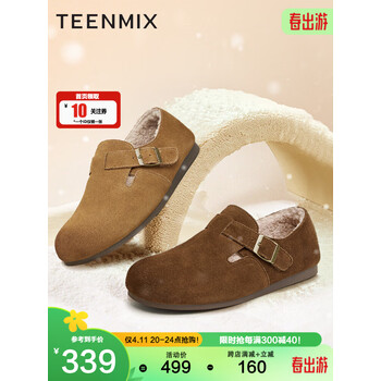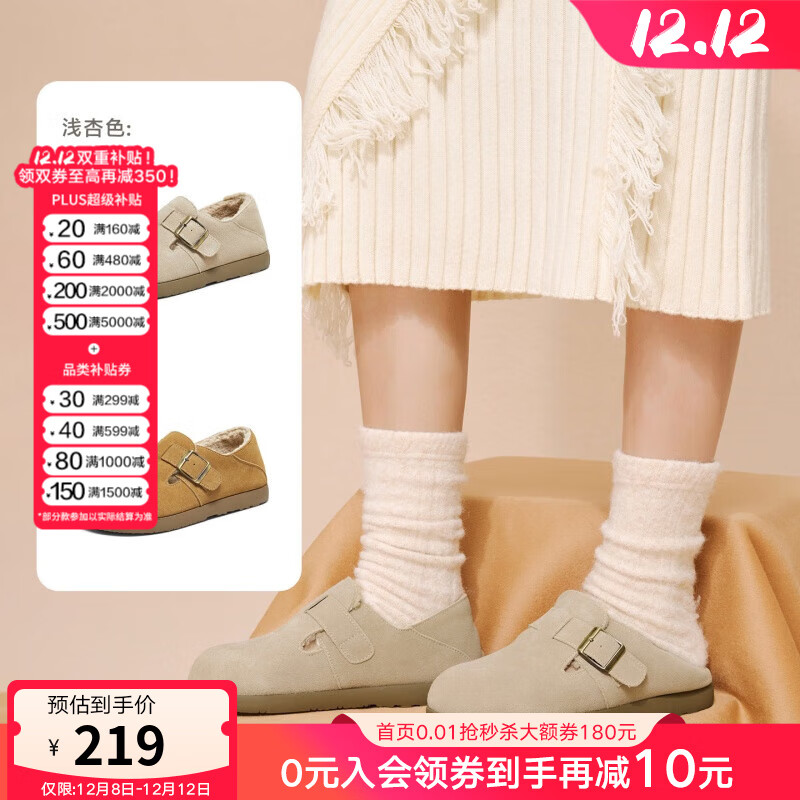 旗舰店百思图2025冬季新款勃肯鞋时尚复古休闲加绒保暖女单鞋D3097DM5 驼色 37