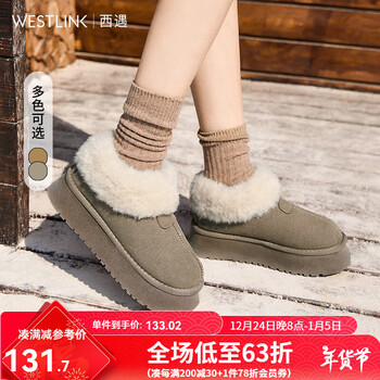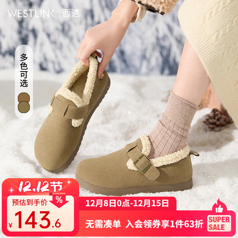 旗舰店西遇毛毛勃肯鞋女加绒2025新款冬季全包复古雪地靴一脚蹬外穿棉鞋 卡色 (预售20天) 35
