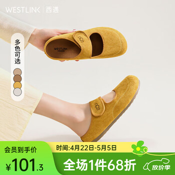 旗舰店西遇玛丽珍勃肯鞋女2025新款春夏丑萌圆头穆勒鞋平底包头半拖鞋 黄色 (JD预售20天) 35 (225)