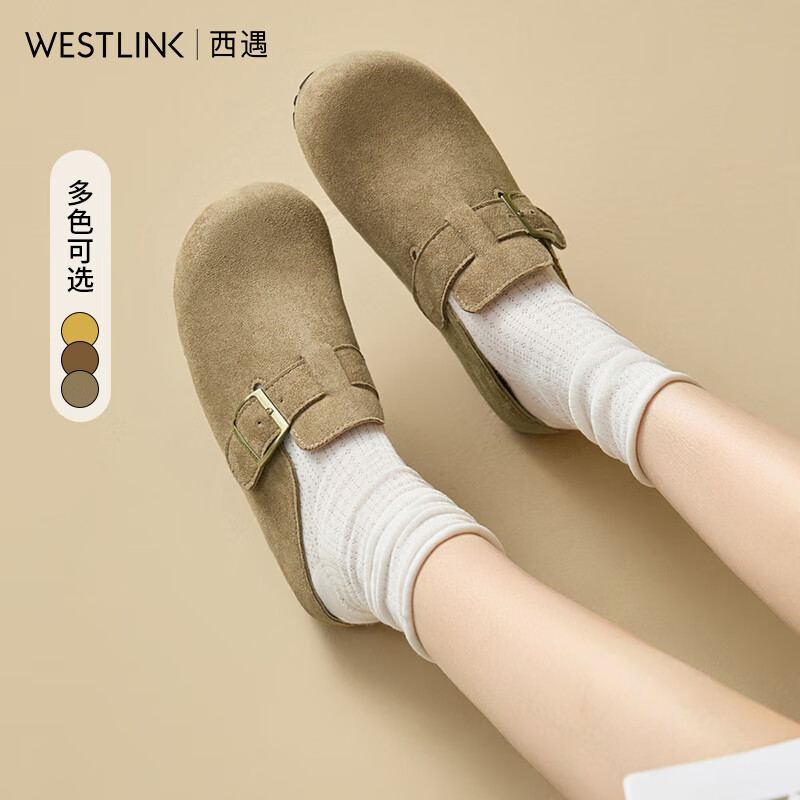 旗舰店西遇(Westlink)勃肯鞋女2025新款春秋百搭博肯女鞋平底包头半拖鞋 卡色 37 (235)