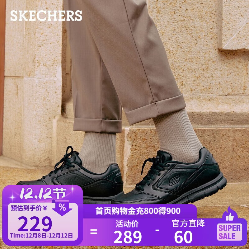 自营斯凯奇(SKECHERS)男士商务鞋秋季厚底休闲板鞋软底舒适上班鞋百搭工作鞋77156