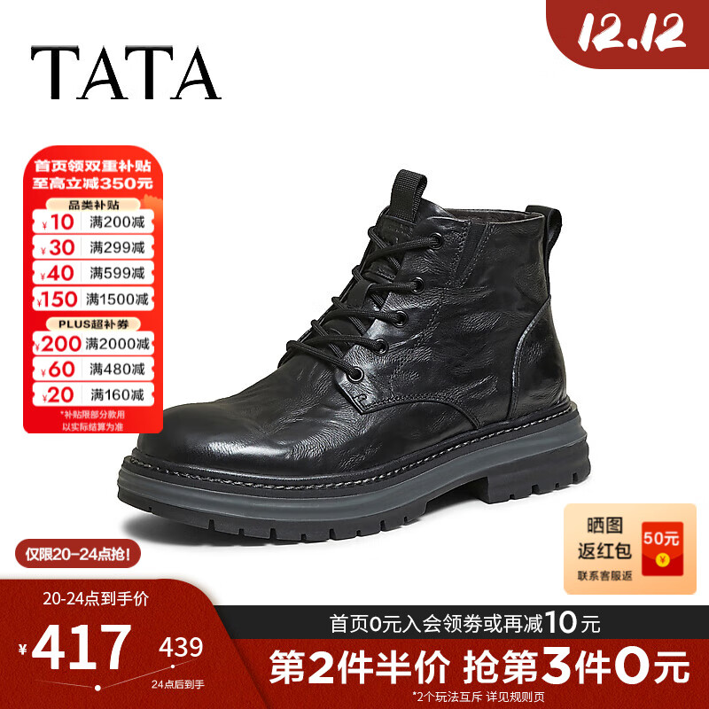 旗舰店他她(TATA)2025冬商场同款时尚简约百搭男士马丁靴高帮新款NGE01DD5 黑色 41
