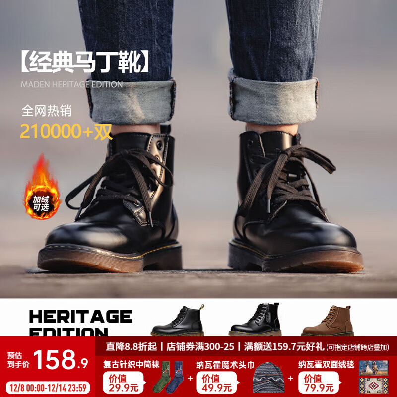 旗舰店马登男士马丁靴秋冬加绒工装靴英伦风黑色休闲皮鞋男通勤百搭真皮靴子 黑色 [软皮/6孔]情侣款 41 男码