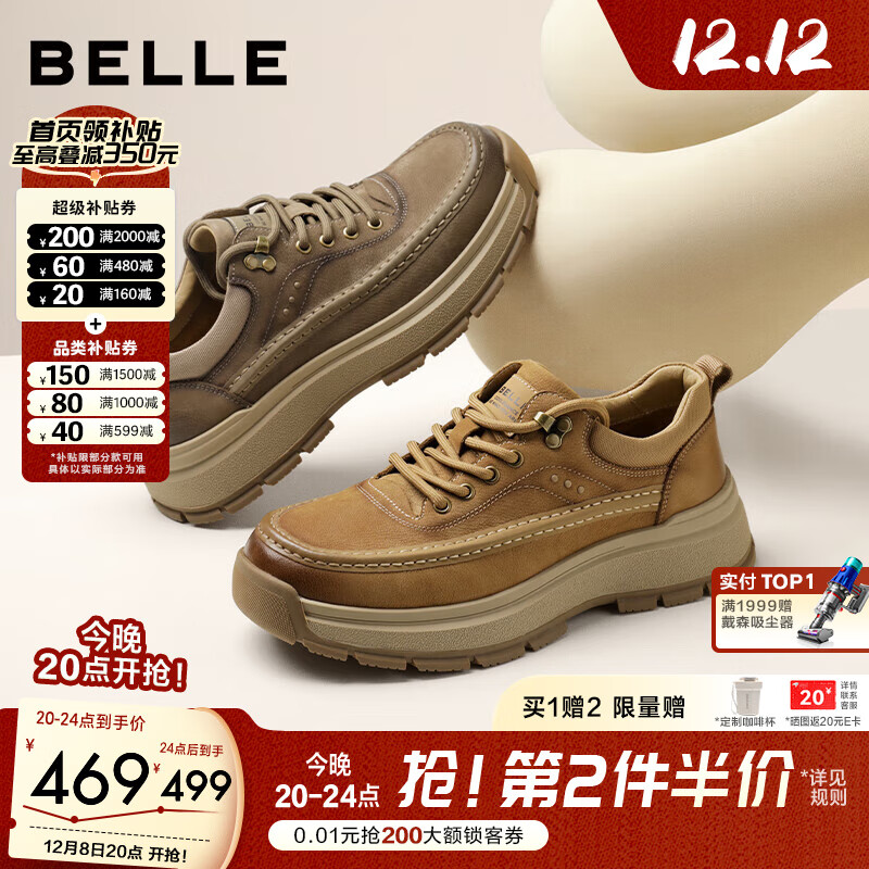 旗舰店百丽厚底增高休闲鞋男26春新牛皮革户外潮搭工装鞋A2281AM6 卡其色 42